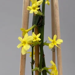 Nicht zuletzt dank seiner stattlichen Wuchshöhe bis zu 300 Zentimetern lässt die Bambussorte ‚Jumbo‘ aus unserer Kollektion ein fernöstliches, apartes Ambiente in Ihrem Garten entstehen. Die altbewährte und beliebte Züchtung eignet sich hervorragend zum Gestalten von immergrünen Hecken oder als eine auffällige Solitärpflanze für bevorzugt halbschattige Standorte. Es ist kein Problem, den Bambus ‚Jumbo‘ in Kübelkultur auf der Terrasse oder auf Ihrem Balkon zu pflegen. In diesem Fall ist lediglich auf regelmäßige Nährstoffzufuhr und ordentliche Wassergaben zu achten. Bambus liebt es feucht, jedoch ohne Staunässe. Diese Bambussorte ist gut winterhart. Im Kübel brauchen die Pflanzen dagegen einen Winterschutz, zum Beispiel durch Pflanzenvlies. Besonders die Wurzeln müssen geschützt werden. Die Sorte bildet keine Ausläufer!