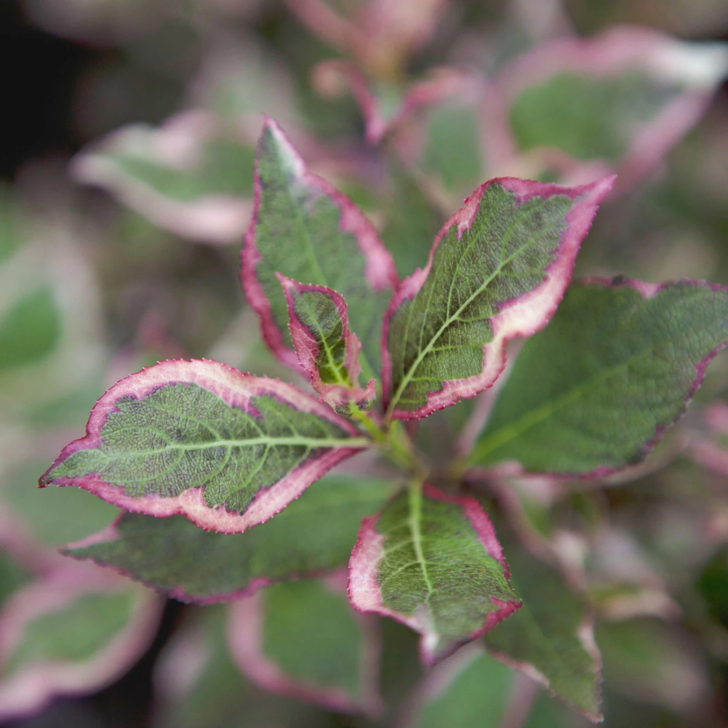 Die Zwerg-Weigelie ‚Monet’® (Weigela florida ‚Monet’®) wächst als kleiner, rundlicher Strauch und erreicht eine Wuchshöhe zwischen 40 und 70 cm. Im Mai schmückt sich das robuste und sehr winterharte Gehölz mit glockenförmigen, rosafarbenen Blüten. Das Laub der Weigela florida ‚Monet® ist dekorativ grün-braun mit einem anfangs rosa überlaufenem cremeweißen Rand, der sich später cremefarben zeigt.
