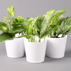 Jede Pflanze wird im Pflanztopf mit 12 cm Ø inkl. Keramiktopf Dallas 14cm Ø in weiß matt geliefert.