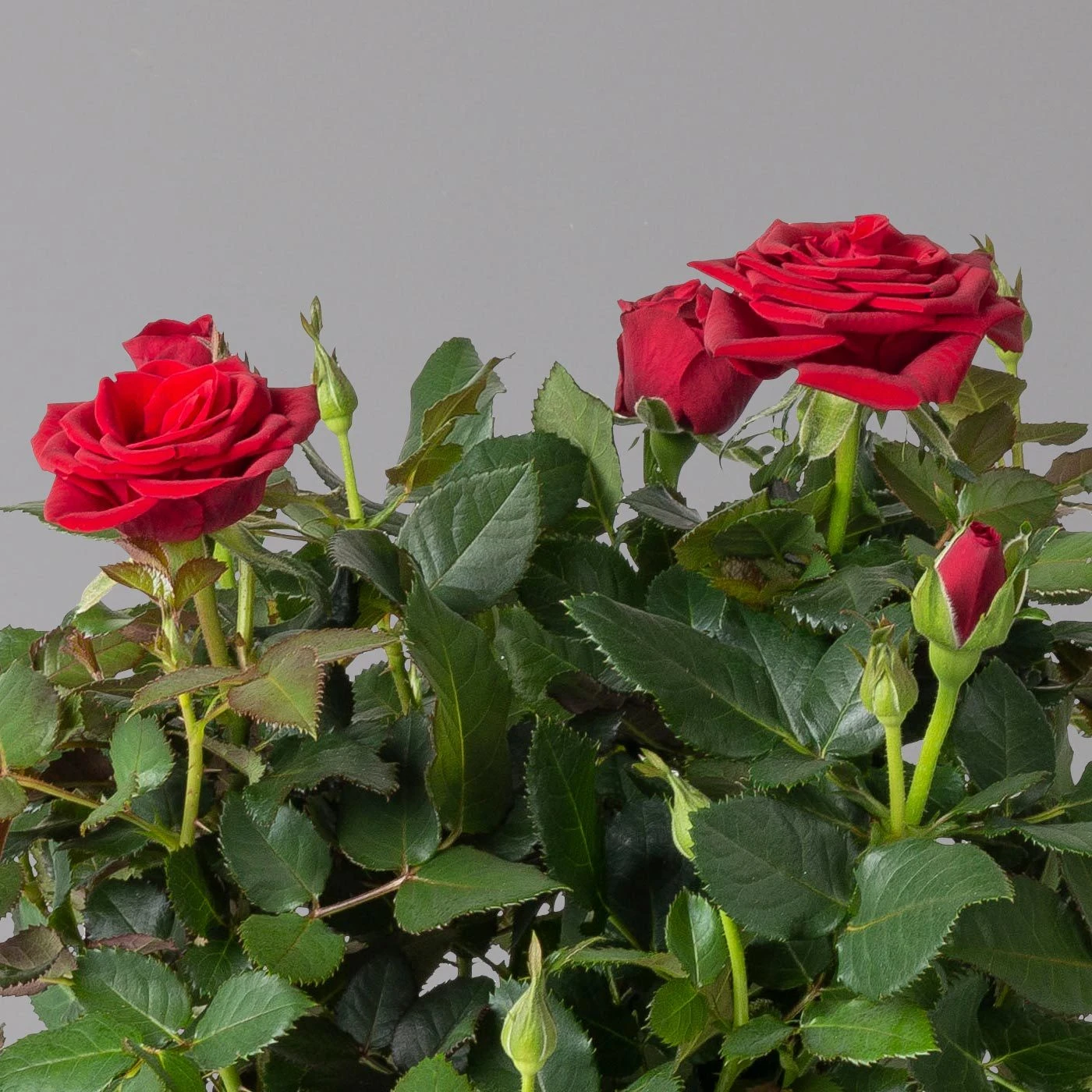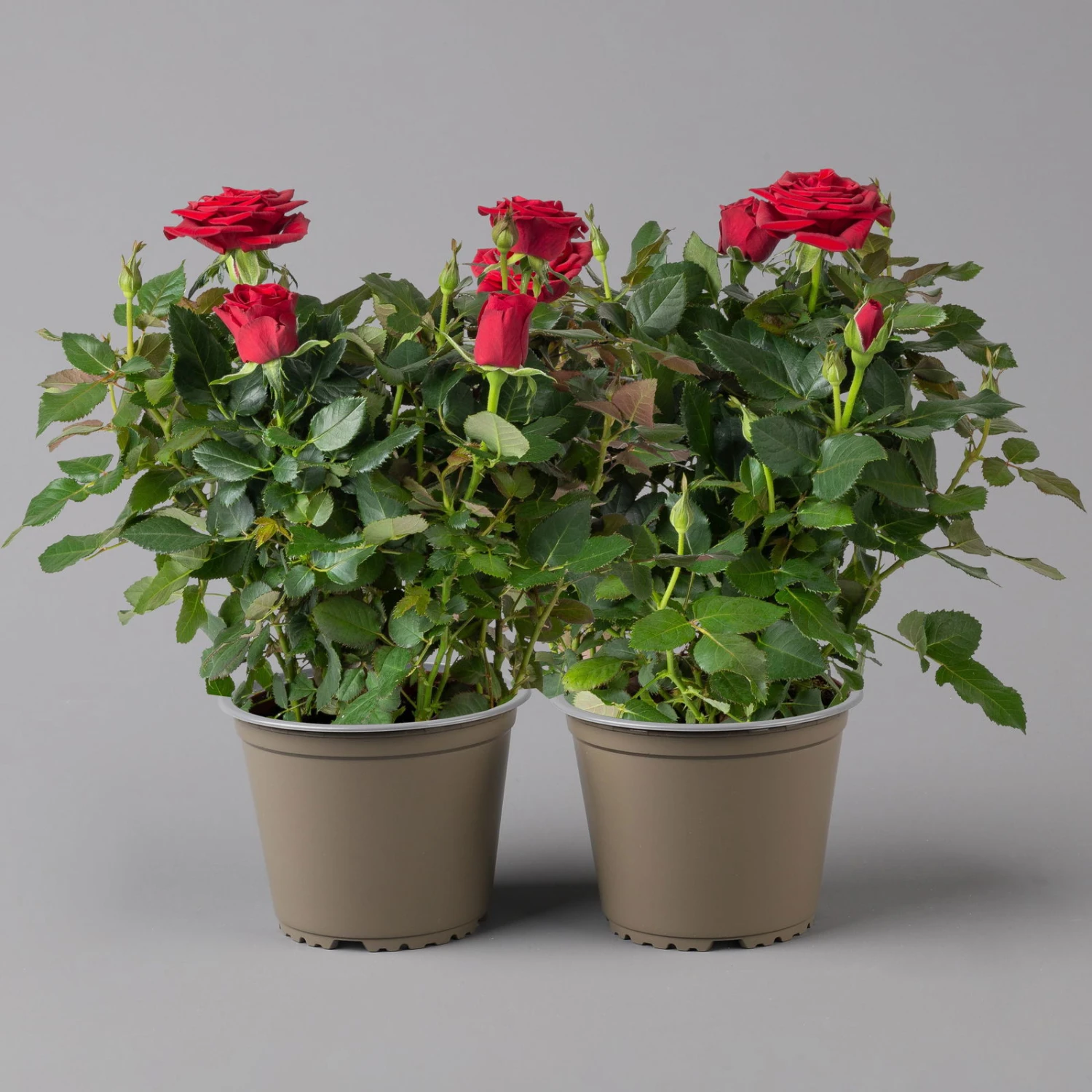 Die Rose (Rosa) überzeugt seit jeher mit ihrer Eleganz und ihren prachtvollen Blüten, ob als Schnittblume, im Beet oder als imposante Rosenbüsche. Mit unserem Set’s erhalten Sie formschöne Topfrosen in rot, die sowohl als bezaubernde Tischdekoration als auch als Stilelement auf Fensterbank oder Schränken eine tolle Figur machen. Sobald keine Gefahr von Nachtfrösten mehr besteht, kann die Rose auch im Kübel oder Balkonkasten auf Terrasse und Balkon, oder sogar ins Beet im eigenen Garten ausgepflanzt werden.